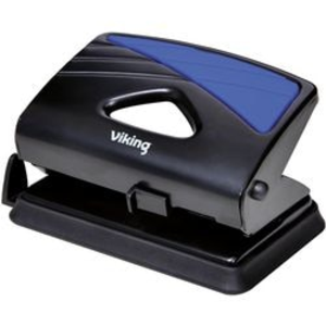 Viking 2-gaats perforator. Afmeting: 95 x 113 x 91 mm (B x D x H). Materiaal: metaal. Ponscapaciteit 20 paginas. Papiergids: ja. Perforatie: 2-gaats. Kleur: zwart, blauw.