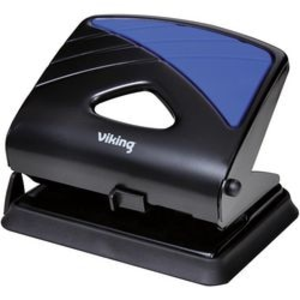 Viking 2-gaats perforator. Afmeting: 101 x 116 x 125 (H x B x D). Materiaal: metaal. Ponscapaciteit: 30 paginas. Papiergids: ja. Perforatie: 2-gaats. Kleur: zwart, blauw.