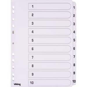 Viking tabbladen Mylar. Gemaakt van karton. Numeriek van 1 tot en met 10. 11 gaten perforatie. Versterkt met folie. Formaat: A4. Gewicht: 170 gram. Kleur: transparant.