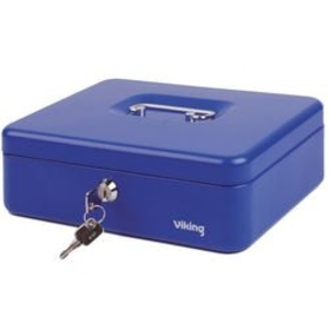 Viking geldkist. Vervaardigd uit sterk, gelast staal. Voorzien van stevig slot met twee sleutels. Praktische, verwisselbare geldlade. Aantal vakken: 4. Afmetingen (B x D x H): 26,2 x 19,2 x 8,2 cm. Kleur: Blauw.