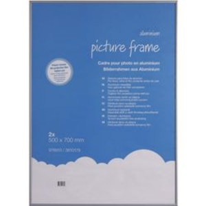 Viking aluminium wissellijst. Afmetingen (H x B): 50 x 70 cm. Kleur: Grijs. Hoeveelheid: 2 stuks. Materiaal: Voorzijde, plexiglas. Frame: Aluminium.