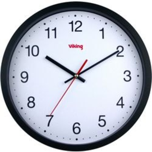Viking wandklok RD3330B. Materiaal: plastic, glas. Kleur frame: zwart. Kleur achtergrond: wit. Afmetingen: 31.5 x 31.5 x 5 cm (H x B x D)