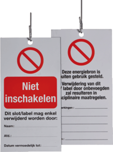 Masterlock veiligheidspictogram label, kunststof, (hxb) 150x80mm, kwaliteitsklasse polyvinylchloride (PVC), met waarschuwingssymbool, met waarschuwingstekst, symbool niet inschakelen, rechthoekig