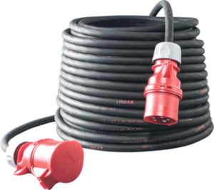 Keraf aansluitleiding, lengte 5m, 5 aders, nom. geleiderdoorsnede 2.5mm², mantel zwart, mantelmateriaal CR (neopreen), aansluiting 1 CEE-stekker 3P+E+N, nom. spanning 400V, buitendiameter 13.5mm, aansluiting 2 CEE-contrastekker 3P+E+N, oliebestendig volgens IEC 60811-404,