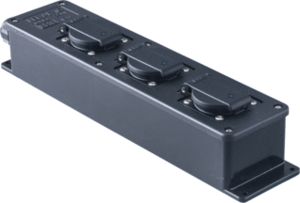 Keraf 16 contactdooscombinatie, kunststof, zwart, 3 randaarde-contactdozen, met deksel, behuizingsvorm rechthoekig, stekerstand gedraaid, beschermingsgraad (IP) IP44, uitvoering oppervlakte glanzend, hoek stekerstand 90°, aderdoorsnede 2.5mm², oppervlaktebescherming geen (onbehandeld), 3 eenheden,