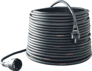 Keraf aansluitleiding, lengte 20m, 3 aders, nom. geleiderdoorsnede 1.5mm², mantel zwart, mantelmateriaal rubber, aansluiting 1 RA-steker recht aangespot, nom. spanning 250V, buitendiameter 11.9mm, aansluiting 2 randaardecontrasteker, beschermingsgraad (IP) IP44, met aardgeleider,