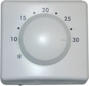 Winterwarm ruimtethermostaat aan/uit, (bxd) 85x37.5mm, type voeding overig, 2-draads, geschikt voor koeling, opbouw, max. contactbelasting 0.2A, verwarmen, bediening draai, beschermingsgraad (IP) IP30, max. spanning contacten 10V, 1 uitgangen koeling, 1 uitgangen verwarming,