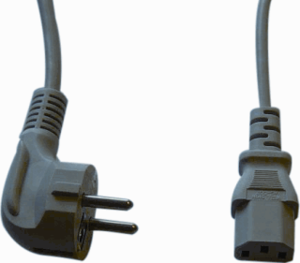 Ratio Electric Power Cord aansluitleiding, lengte 2m, 3 aders, nom. geleiderdoorsnede 1mm², mantel grijs, mantelmateriaal polyvinylchloride (PVC), aansluiting 1 randaardesteker schuin, nom. spanning 220 - 250V, buitendiameter 6.7mm, aansluiting 2 koudapparaatcontrasteker,