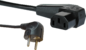Ratio Electric Power Cord aansluitleiding, lengte 2.5m, 3 aders, nom. geleiderdoorsnede 1mm², mantel zwart, mantelmateriaal polyvinylchloride (PVC), aansluiting 1 randaardesteker schuin, nom. spanning 220 - 250V, buitendiameter 6.7mm, aansluiting 2 koudapparaatcontrasteker.,