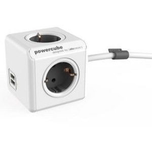 Allocacoc 1407 / DEEUPC PowerCube Stekkerdoos met 2 USB-poorten 4 stopcontacten type F 3 m Wit, grijs