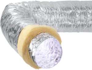 Panflex AM2 ISO Aks alu.laminaatslng geiso. m spiraal, isolatiedikte 25mm, buitenslang met spiraal, buitenslang glasvezelversterkt alumin, wanddikte binnenslang 70µm, soort isolatiemateriaal glaswol, buigradius 240mm, nom. diameter 160mm, mediumtemperatuur (continu) -25 - +90°C, rollengte 10m,