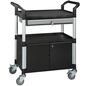Wagen met kunststof legbord , Verrijdbare bijzettafel met legblad en laden , Servicetrolley