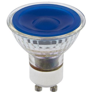 Ledspot GU10 MR16 van gekleurd glas 5W, Lichtstroom: 50 lm, Type fitting: GU10, Max. vermogen: 5 W, Beschermingsgraad IP: IP 20, Lichtbundel openingshoek: 38 °, Levensduur: 15000 u, Lengte: 54 mm, Spanning: 240 V, Energieverbruik: 5 W, Type: AC, Vermogen: 5 W