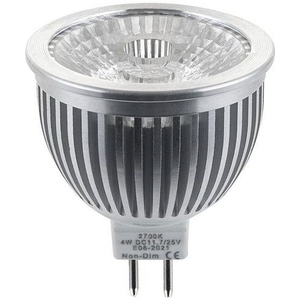 Ledspot GU5.3 MR16, Lichtstroom: 280 lm, Type fitting: GU5.3, Max. vermogen: 4 W, Beschermingsgraad IP: IP 20, Temperatuur kleuren: 2700 K, Lichtbundel openingshoek: 38 °, Levensduur: 30000 u, Lengte: 59 mm, Spanning: 12 V, Energieklasse: F, Energieverbruik: 4 W, Type: AC/DC, Vermogen: 4 W