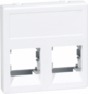 Ocs inzetplaat schakelmateriaal, kunststof, wit, gebruik modular-Jack, samenstelling modulair element voor sch, dekselset vloerpot/vloerg, geschikt voor merk ADC/Radiall, uitvoering oppervlakte mat, draagring, variant wit, 2 aansluitingen, T.b.v. Jack 2xRJ45-8P8C, 1 modules (bij modulair sys,