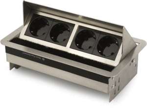 Ocs Rhodos 4xWCD bureau aansluitunit, roestvaststaal (RVS), (lxbxh) 217x127x110mm, uitvoering inbouw (stucwerk), opklapbaar, rechthoekig, 4 contactdozen met randaard, inbouwdiepte 66.3mm