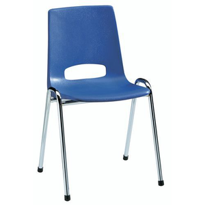 Kuipstoel, Type onderstel: 4 poten, Type voet: Stoeldoppen, Zitting materiaal: Polypropyleen, Type stoel: Stoel, Stapelbaar: ja, Zitting kleur: Blauw, Onderstel kleur: Grijs, Rug kleur: Blauw, Hoogte: 83 cm, Zitdiepte: 39 cm, Zithoogte: 43 cm, Zitbreedte: 42 cm, Onderstel materiaal: Staal, Model: Zonder armleuning, Paal Ø: 2.2 cm, Coating: Verchroomd, Gewicht: 3 kg, Max. steungewicht: 90 kg