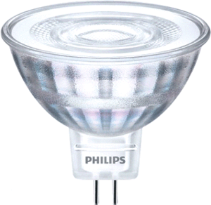 Philips CorePro led-lamp, wit, voet GU5.3, 4.4W, temperatuur 4000K, energie-efficiƫntieklasse volgens E F, uitvoering glas/afdekking overig, weergave-index 80 - 89, lichtstroom 390lm, lampvorm reflector, lampaanduiding MR16, lichtkleur vlgs. EN 12464-1 neutraal wit 3300 - 5300,