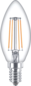 Philips CorePro led-lamp, wit, voet E14, 4.3W, temperatuur 2700K, energie-efficiƫntieklasse volgens E F, uitvoering glas/afdekking helder, weergave-index 80 - 89, lichtstroom 470lm, lampvorm kaars, lampaanduiding overig, filament lamp, lichtkleur vlgs. EN 12464-1 warmwit < 3300 K,