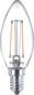 Philips CorePro led-lamp, wit, voet E14, 2.2W, temperatuur 4000K, energie-efficiƫntieklasse volgens E E, uitvoering glas/afdekking helder, weergave-index 80 - 89, lichtstroom 250lm, lampvorm kaars, lampaanduiding overig, filament lamp, lichtkleur vlgs. EN 12464-1 neutraal wit 3300 - 5300,