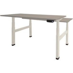 Schaffenburg zit-sta-bureau Dextro Plus Duo. Bureaustijl: rechthoekig. Hoogteverstelbaar: Hoogteverstelbaar. Materiaal: melamine. Monteerservice: nee. Zelfmontage: ja. Stapelbaar: nee. Type voet: T-Voet. Poot hoogte: 750 mm. Werkhoogte (max): 1305 mm. Afmetingen: 645 x 1600 x 800 mm (h x w x d). FrameKleur: wit. Kleur: grijs.