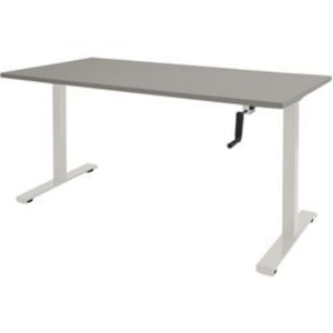 Schaffenburg zit-sta-bureau Dextro Slinger. Bureaustijl: rechthoekig. Hoogteverstelbaar: Hoogteverstelbaar. Materiaal: melamine. Monteerservice: nee. Zelfmontage: ja. Stapelbaar: nee. Type voet: T-Voet. Poot hoogte: 750 mm. Werkhoogte (max): 1245 mm. Afmetingen: 750 x 1400 x 800 mm (h x w x d). FrameKleur: wit. Kleur: grijs.