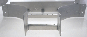 Gouda Holland t-stuk kabelladder, roestvaststaal (RVS), sport profiel geperforeerd, oppervlaktebescherming overig, kabelladderbreedte 600mm, kwaliteitsklasse RVS 304 (1.4301), binnenstraal 250mm, uitvoering voor grote overspanninge, uitvoering zijligger profiel (open vorm), kabelladderhoogte 130mm,
