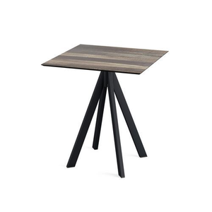 Infinity bistrotafel met zwart onderstel + HPL-blad, Lengte: 70 mm, Diepte: 70 cm, Tafelblad materiaal: Compact laminaat, Onderstel kleur: Zwart, Tafelblad kleur: Bruin/beige, Hoogte: 73 cm, Gebruiksfrequentie: Intensief, Vorm: Vierkant