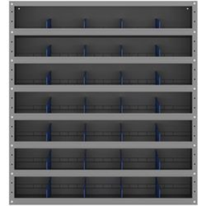 Ceha Kast PBDK1103. Breedte: 1000 mm. Diepte: 300 mm. Gewicht: 36000 g. Hoogte: 1080 mm. Inclusief: 6 x Legborden, 36 x Scheidingswanden. Kleur: Grijs. Materiaal: Staal. Merk: Ceha. Model: PBDK1103. Product Type: Kast. Productlijn: RAL7037. VE: Stuk.