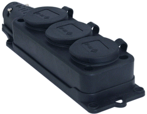 Power SOLID contactdooscombinatie, overig, zwart, 3 randaarde-contactdozen, met deksel, behuizingsvorm rechthoekig, beschermingsgraad (IP) IP44, uitvoering oppervlakte mat, oppervlaktebescherming overig, kwaliteitsklasse thermoplast