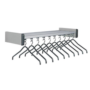 Wandgarderobe met 10 kledinghangers, Aantal haken: 10, Breedte: 103 cm, Kleur: Grijs, Type: Wandmodel, Lengte rail: 103 cm, Materiaal: Aluminium, Gerecyclede verpakkingen: 95 %, Gerecycled product: 50 %, Eco-verantwoordelijke aanpak: ja