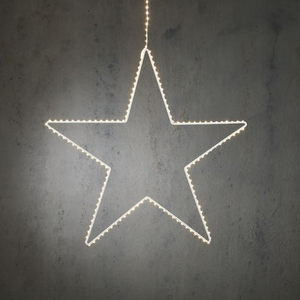 Kerstdecoratie ster wit led met timer. Lichtster om buiten te bevestigen. Heldere verlichting, bestaat uit 160 klassieke witte ledlampjes. Kan worden ingesteld met een timer. De ster met een diameter van 58 cm wordt geleverd met een kabel zodat deze op een hoogte van 128 cm kan worden opgehangen.