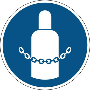Gebodsbord met pictogram gasflessen vastzetten. Bestand tegen temperaturen van - 40 tot 120 °C. Voorgeboord paneel met 4 gaten voor bevestiging met schroeven.