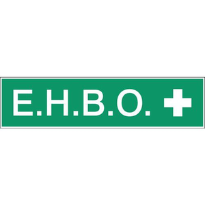 Noodevacuatiebord, Zelfklevend: nee, Stijf: ja, Opdruk: EHBO-post, Materiaal: Polypropyleen, Hoogte: 105 mm, Breedte: 297 mm, Model: Standaard