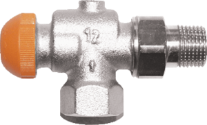 Herz TS-'98-V radiatorafsluiter, hoogte 29mm, thermostatisch voorbereid, geschikt voor tweepijpssysteem, maat radiatoraansluiting 1/2" (15), haaks verkeerd, maat thermostatisch regelelement M28x1.5, knop oranje, voorinstelbaar, maat leidingaansluiting 1/2" (15), uitvoering staartstuk/binnendraad,