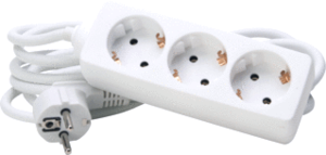 Kopp contactdooscombinatie, kunststof, wit, 3 randaarde-contactdozen, behuizingsvorm rechthoekig, stekerstand gedraaid, lengte snoer 3m, beschermingsgraad (IP) IP20, uitvoering oppervlakte mat, hoek stekerstand 45°, aderdoorsnede 1.5mm², oppervlaktebescherming geen (onbehandeld),