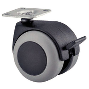 Meubelwiel met dubbele rol met rubberen loopvlak, Ø: 50 mm, Max. belasting: 40 kg, Wiel/Zwenkwielen kracht (Reeks): 101 - 200 kg, Wiel/Zwenkwielen diameter (Reeks): 1 - 100 mm, Breedte loopvlak: 10 mm, Boutgat Ø: 4.4 mm, Hartafstand bevestigingsgaten: 28 x 28 mm, Totale hoogte: 64 mm, Type naaf: Glijlager, Gewicht: 0.11 kg, Type bevestiging: Met grondplaat, Loopvlak materiaal: Rubber, Model: Zwenkwiel, Gebruik: Meubelindustrie, Breedte grondplaat: 38 mm, Lengte grondplaat: 38 mm