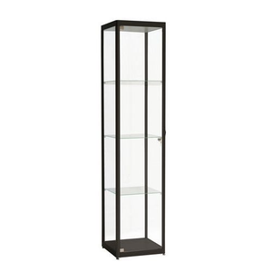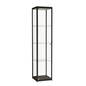 Vitrinekast Column, Onderstel kleur: Zwart, Hoogte: 180 cm, Breedte: 40 cm, Diepte: 40 cm, Aantal legborden: 3, Sokkel materiaal: Plaatmateriaal, Aantal lampen: 0, Recyclebare verpakking: Ja - 100%, Recyclebaar product: Ja - 100%, Wand materiaal: Glas, Legbord materiaal: Gehard glas, Deur openingstype: Klapdeur, Type: Kast