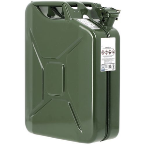 Jerrycan voor benzine, Totale inhoud: 20 L, Kleur: Groen, Type: Benzine, Lengte: 345 mm, Breedte: 165 mm, Hoogte: 470 mm, Materiaal: Staal, Gewicht: 4 kg, Special Covid-19: nee, Recyclebaar product: Ja - 100%