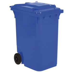 Mobiele container, Totale inhoud: 360 L, Materiaal: Kunststof, Deksel kleur: Blauw, Body kleur: Blauw, Type: Algemeen gebruik, Lengte: 87 cm, Breedte: 60 cm, Hoogte: 120 cm, Kleur: Blauw, Aantal wielen: 2