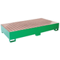 Opvangbak, Vermogen (aantal vaten): 8, Roostermat: ja, Inhoud opvangbak: 880 L, Kleur: Groen, Totale lengte: 1240 mm, Totale breedte: 2480 mm, Totale hoogte: 395 mm, Max. statisch draagvermogen: 2500 kg, Max. dynamisch draagvermogen: 1500 kg, Gewicht: 280 kg, Materiaal: Staal, Recyclebaar product: Ja - 100%, Zuurbestendig: ja, Afwerking: Epoxy, Waterige oplossing: ja, Koolwaterstof oplosmiddelen: ja
