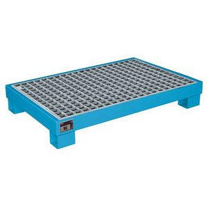 Opvangbak met rooster, Vermogen (aantal vaten): 2, Roostermat: ja, Inhoud opvangbak: 72 L, Kleur: Blauw, Totale lengte: 800 mm, Totale breedte: 500 mm, Totale hoogte: 290 mm, Gewicht: 34 kg, RAL: 5012, Materiaal: Staal, Type onderstel: 4 poten met een hoogte van 10 cm, Afwerking: Epoxy, Waterige oplossing: ja, Koolwaterstof oplosmiddelen: ja, StawaR: ja