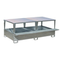 Opvangbak met verhoging 1050 L, Vermogen (aantal vaten): 8, Roostermat: ja, Inhoud opvangbak: 1050 L, Kleur: Grijs, Totale lengte: 2470 mm, Totale breedte: 1540 mm, Totale hoogte: 955 mm, Max. statisch draagvermogen: 4000 kg, Gewicht: 315 kg, Materiaal: Staal, Recyclebaar product: Ja - 100%, Afwerking: Gegalv., Capaciteit (aantal bulkcontainers): 2, Waterige oplossing: ja, Koolwaterstof oplosmiddelen: ja