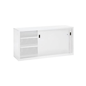 Lage kast met schuifdeuren, Max. belasting: 400 kg, Totale hoogte: 1000 mm, Totale breedte: 2000 mm, Aantal legborden: 4, Totale diepte: 600 mm, Frame kleur: Grijs, Kleur deur: Lichtgrijs, Type: Lage kast, Model: Met tussenwand, Max. belasting per legbord: 80 kg, RAL: 7035, Met lade: nee, Geleverd gemonteerd: ja, Materiaal: Staal, Aantal deuren: 2