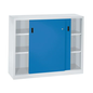 Lage schuifdeurkast, Max. belasting: 400 kg, Totale hoogte: 1000 mm, Totale breedte: 1000 mm, Aantal legborden: 2, Totale diepte: 600 mm, Frame kleur: Grijs, Kleur deur: Blauw, Type: Lage kast, Model: Zonder tussenwand, Max. belasting per legbord: 80 kg, RAL: 7035 5010, Met lade: nee, Geleverd gemonteerd: ja, Materiaal: Staal, Aantal deuren: 2