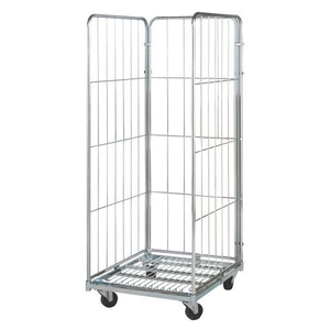 • Rolcontainer van staal met 3-zijdige gaaswand, ideaal voor het verplaatsen van grote goederen