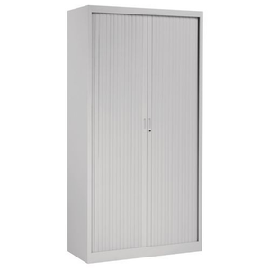 Roldeurkast Premium unie, Totale hoogte: 198 cm, Totale breedte: 100 cm, Deur openingstype: Met roldeur, Kleur deur: Lichtgrijs, Kleur ombouw: Lichtgrijs, Totale diepte: 43 cm, Aantal legborden: 4, Model: Hoge kast, Max. belasting per legbord: 60 kg, Geleverd gemonteerd: ja, Materiaal: Staal, Recyclebare verpakking: Ja - 100%, Gerecyclede verpakkingen: 100 %, Recyclebaar product: Ja - 100%, Gerecycled product: 31 %, Eco-verantwoordelijke aanpak: ja, Type sluiting: Met sleutel, NF Milieu: nee, NF Ergonomische kantoorinrichting: nee