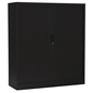 Roldeurkast Premium unie, Totale hoogte: 136 cm, Totale breedte: 120 cm, Deur openingstype: Met roldeur, Kleur deur: Zwart, Kleur ombouw: Zwart, Totale diepte: 43 cm, Aantal legborden: 3, Model: Lage kast, Max. belasting per legbord: 60 kg, Geleverd gemonteerd: ja, Materiaal: Staal, Recyclebare verpakking: Ja - 100%, Gerecyclede verpakkingen: 100 %, Recyclebaar product: Ja - 100%, Gerecycled product: 31 %, Eco-verantwoordelijke aanpak: ja, Type sluiting: Met sleutel, NF Milieu: nee, NF Ergonomische kantoorinrichting: nee