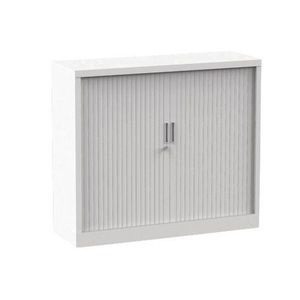 Roldeurkast Premium unie, Totale hoogte: 105 cm, Totale breedte: 120 cm, Deur openingstype: Met roldeur, Kleur deur: Wit, Kleur ombouw: Wit, Totale diepte: 43 cm, Aantal legborden: 2, Model: Lage kast, Max. belasting per legbord: 60 kg, Geleverd gemonteerd: ja, Materiaal: Staal, Recyclebare verpakking: Ja - 100%, Gerecyclede verpakkingen: 100 %, Recyclebaar product: Ja - 100%, Gerecycled product: 31 %, Eco-verantwoordelijke aanpak: ja, Type sluiting: Met sleutel, NF Milieu: nee, NF Ergonomische kantoorinrichting: nee, Brandveiligheid: M1