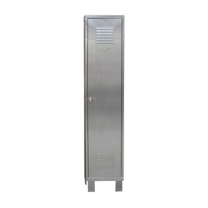 Garderobekast, Type garderobekast: Met vakken en garderobe, Materiaal: Roestvrij staal, Aantal kastkolommen: 1, Onderstel: Op poten, Type sluiting: Met hangslot, Hoogte: 1940 mm, Breedte: 400 mm, Breedte kolom: 400 mm, Diepte: 490 mm, Plaatstaal dikte: 8/10de, Kleur ombouw: Grijs, Kleur deur: Grijs, Geleverd gemonteerd: ja, Garderobekast gebruiksomgeving: Zware industrie, Aantal vakken/kolom: 1, Recyclebare verpakking: Ja - 100%, Recyclebaar product: Ja - 100%, Gewicht: 35.6 kg, Aantal vakken: 3
